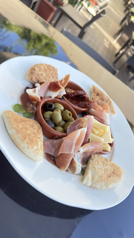 Prisciutto,parmesan,olives,sun-dired tomato,pita