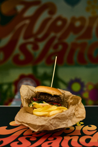 Cheddar sajttal töltött marha burger Chipotle paprikás - cayen borsos szósszal len- és szezámmagos buciban,sült baconnal, ropogós csónakburgonyával. (nem erős!)