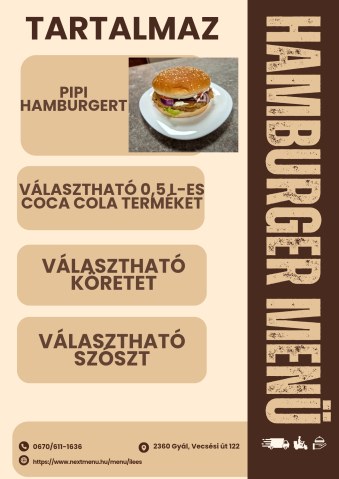 Includes: a hamburger + a choice of 0.5 L Coca-Cola product + a choice of side + a choice of sauce (ketchup, mustard, mayonnaise, tartar sauce).