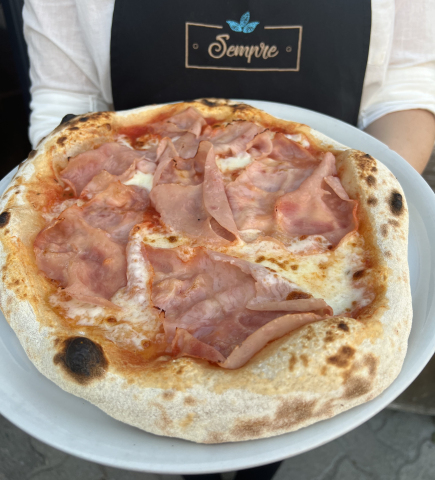 56. PROSCIUTTO – Tomato Sauce, Mozzarella, and Ham