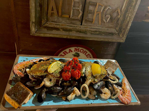38. GRIGLIATA MISTA (2 PERSONS) – Mixed Seafood Platter for Two with Side Dishes (Scampi, Salmon, Black and Venus Mussels, Gamberoni Shrimp, Squid, and John Dory)