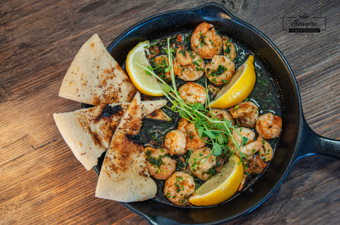 40. GAMBERI FRITTI NEL BURRO ALL’AGLIO – Gamberoni Shrimp Sautéed in Garlic Butter, Served with Pizza Bread
