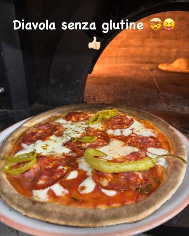 SENZA GLUTINE DIAVOLA – Tomato Sauce, Mozzarella, Pepperoni, and Spicy Salami